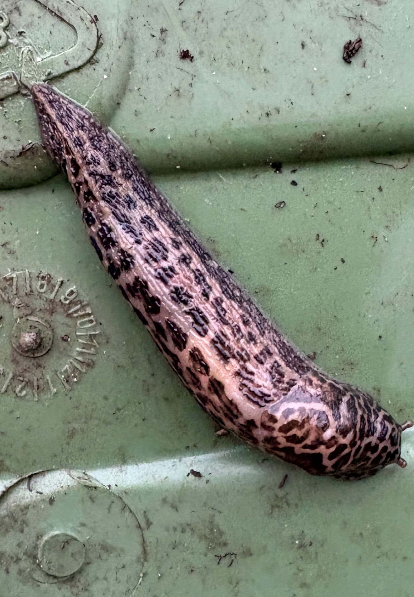 Ze kunnen volgens de gevonden gegevens drie jaar oud worden. Dat lukt zeker als ze zich zo kunnen verschuilen zoals dit dier deed. Dan mag ik het beestje niet weggooien. Ze eten veel en derhalve zou mijn bijdrage aan het plantenafval kunnen verminderen. De slak is heel herkenbaar aan de panterachtige tekening op zijn huid.