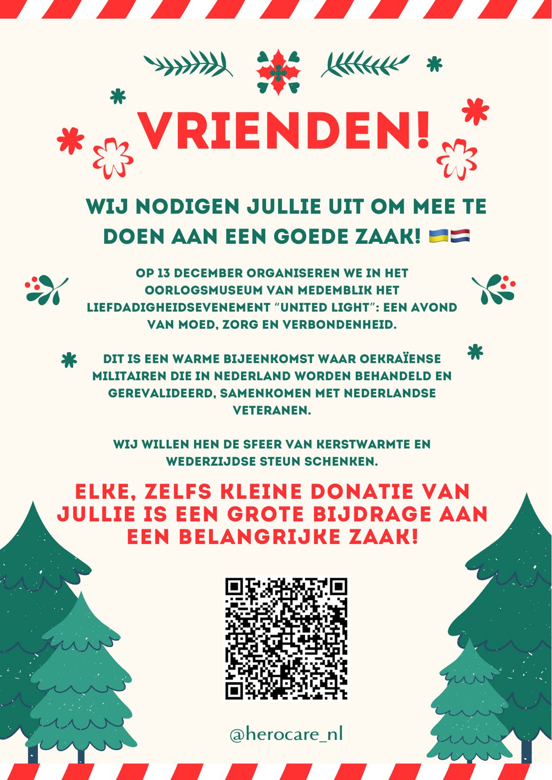 United Light vindt plaats op woensdag 13 december in het Oorlogsmuseum Medemblik. ragen, tips, hulp aanbieden of op de hoogte blijven van de voorbereidingen? Neem contact op via Instagram: @herocare_nl